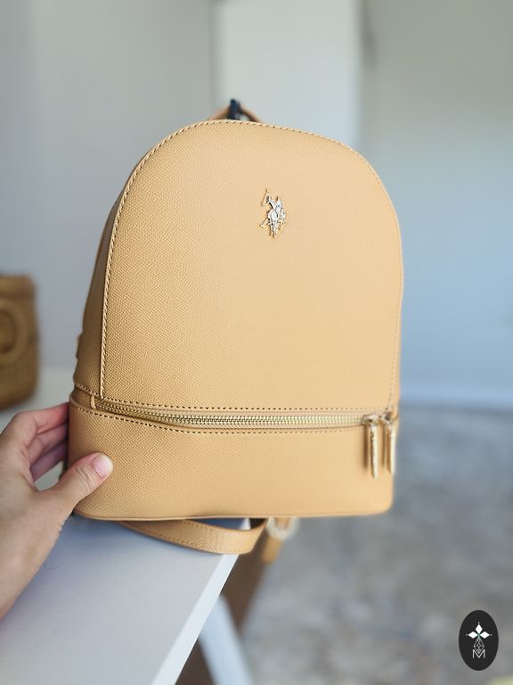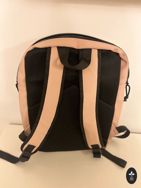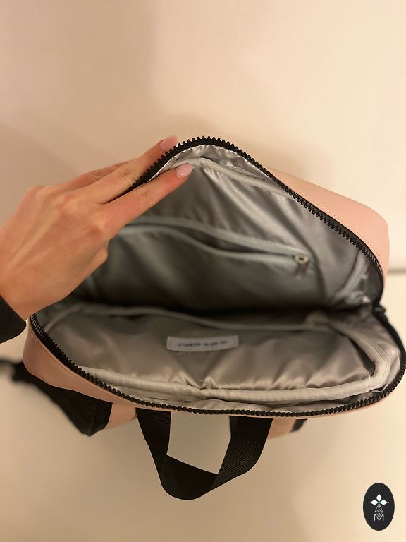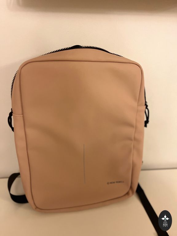 Nahast seljakott, mida saab kasutada ka kotina. Mõõdud: laius - 34 cm, pikkus - 39 cm.
