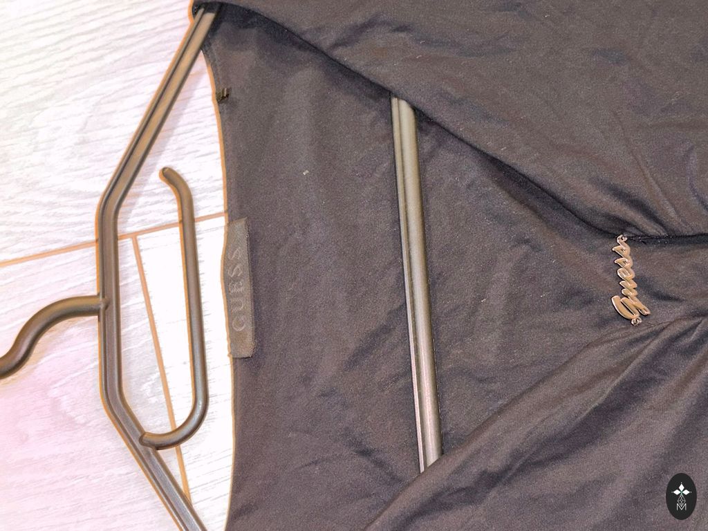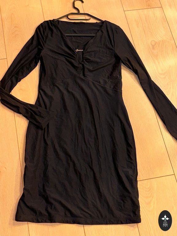 Rafinuotas pasirinkimas vakarėliams, šventėms ar elegantiškam vakarui. Suknelė turi lengvą juodą viršų su gilesne iškirpte, o sijonas gausiai puoštas raštuotais blizgučiais, kurie suteikia blizgesio ir šventinę nuotaiką.