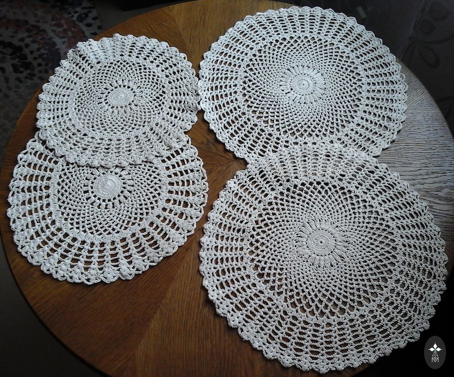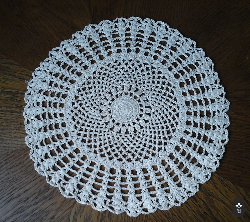 Kreemikas laudlina mustriga, tikandiga ja heegeldatud servaga. Pehme, meeldiv kangas. Ei ole rebenenud ega kahjustatud, kuid on mõned nõrgad beežid laigud (umbes 1cm), mis on praktiliselt nähtamatud. Mõõtmed 102cm x 135cm.