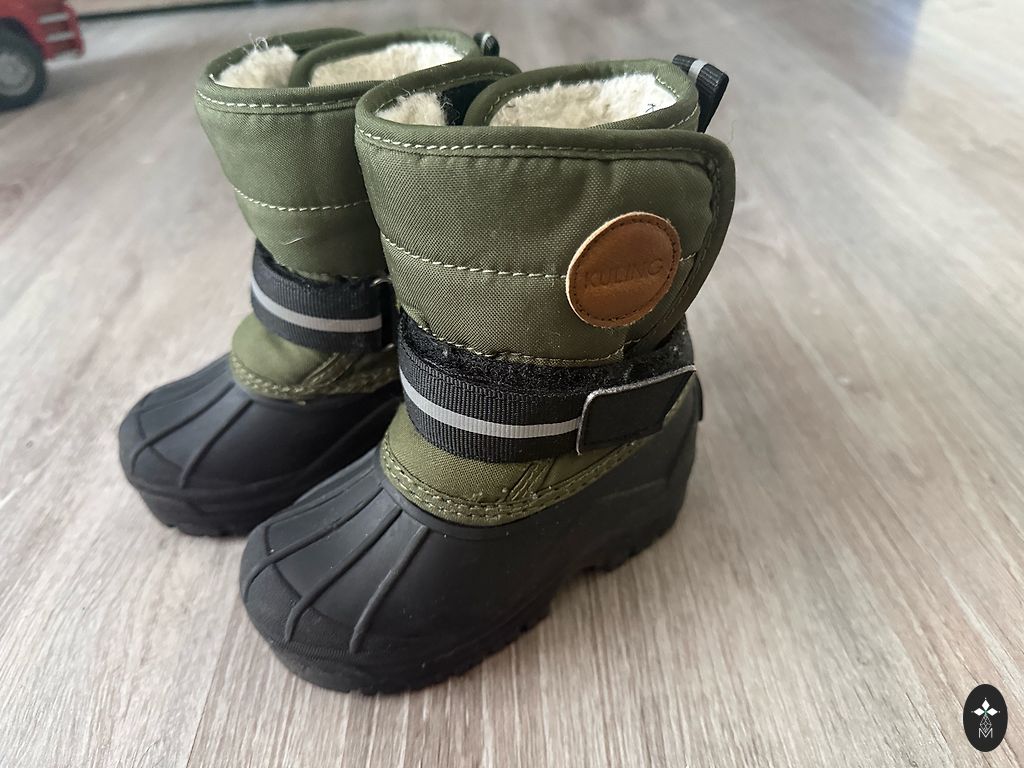 Geri žieminiai batai, pirkti Švedijoje, dėvėti vieną žiemą. Kojos buvo šiltos ir sausos, bent jau praėjusios žiemos (2024/2025 m.) orais. Vidinė pėdos pusė 13,4 cm pagal lentelę, bet tikrai geriau ant mažesnės pėdos, patys su kojine vilkėjome apie 12,5 cm. Gleivinė labai gerai prilimpa.