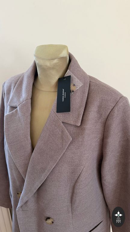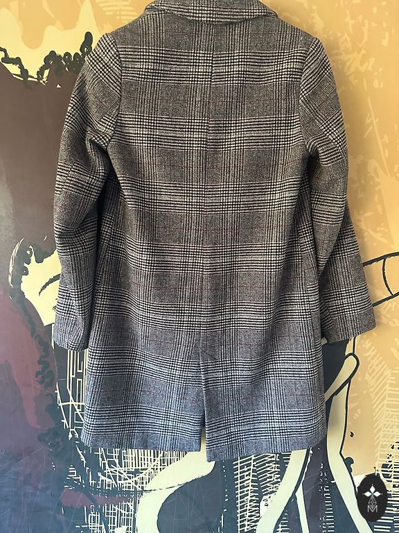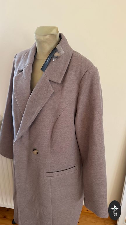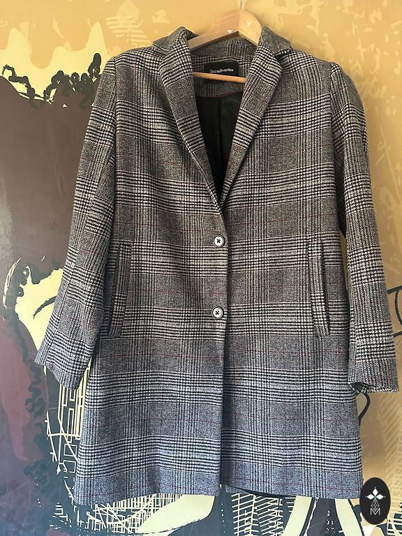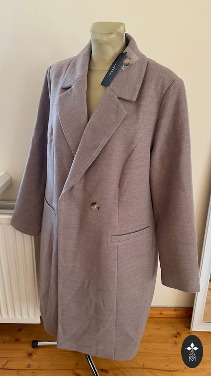 Languoto audinio paltas su šviesiu pamušalu (tinklelis). Geros būklės, patogaus kirpimo