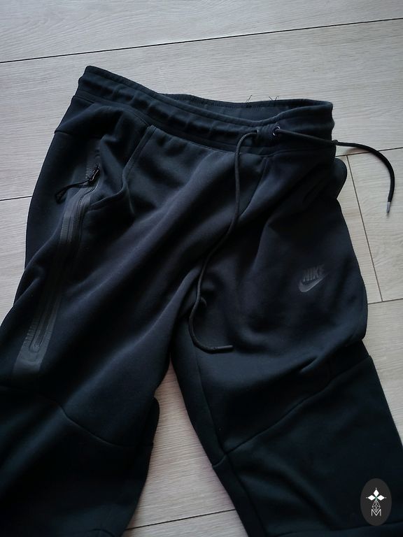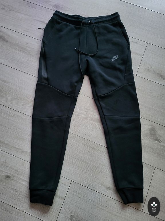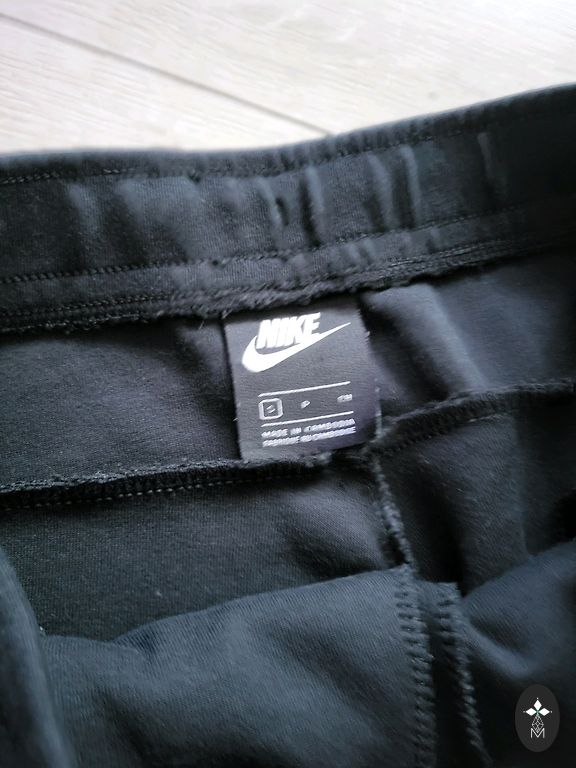 Juodos spalvos „Nike“ treniruočių kelnės. Nurodytas dydis S, bet tinka iki L dydžio. Yra naudojimo žymių, bet nėra didelių defektų.