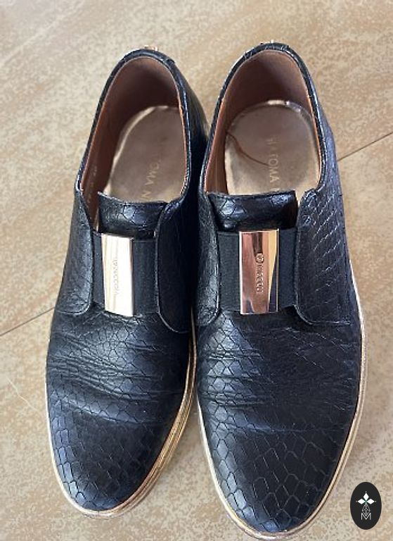 Šiek tiek nusidėvėję originalūs batai. Pridedami du batų maišeliai. Oda lygi ir blizgi. Yra nedideli įbrėžimai. Žiūrėti nuotrauką. Stabilus 41 dydis (26,7 cm).