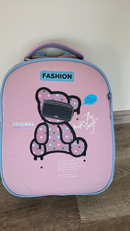 Backpack, sports bag, and pencil case with pencils. There are some signs of wear: some scuffs here and there, some cleaning needed, but overall in good condition.