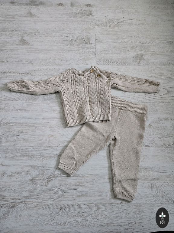 Kootud kapuutsiga kombinesoon. Värvi on raske kirjeldada – see ei ole ei menta ega hall, vaid neutraalne toon, mis sobib nii tüdrukutele kui ka poistele. Allosas kinnitub. Postikulud kannab ostja.