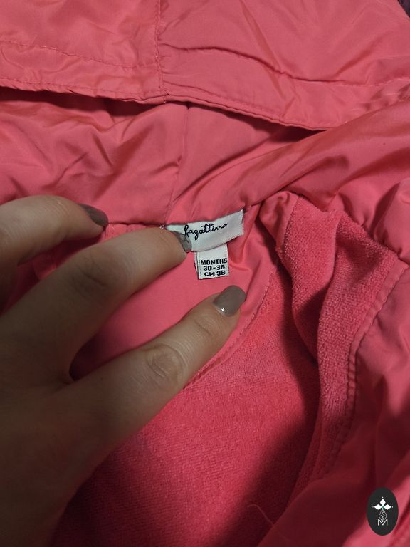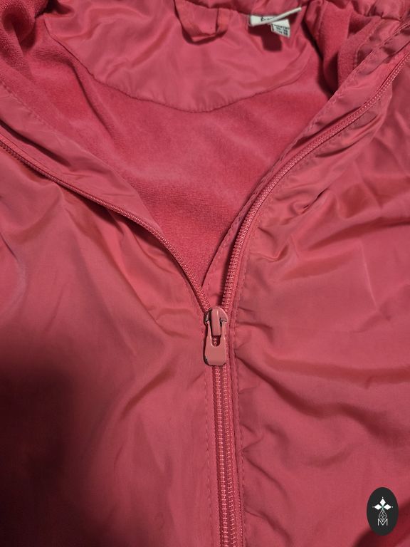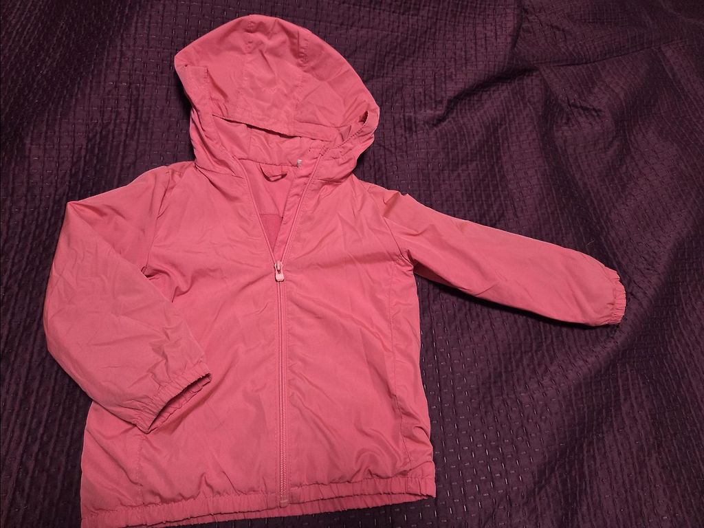 Ryškus ne sezono striukė. Dydis 98. Nepraleidžia vėjo ir vandens, kvėpuojanti, atstumia nešvarumus. Atspindintys elementai. Nuimamas gobtuvas. Užsegimas su užtrauktuku ir sagomis. Kišenės su užtrauktukais. Patogus fliso apykaklė. Bendras ilgis 45 cm. Pečių plotis 28 cm. Rankovių ilgis 35 cm.