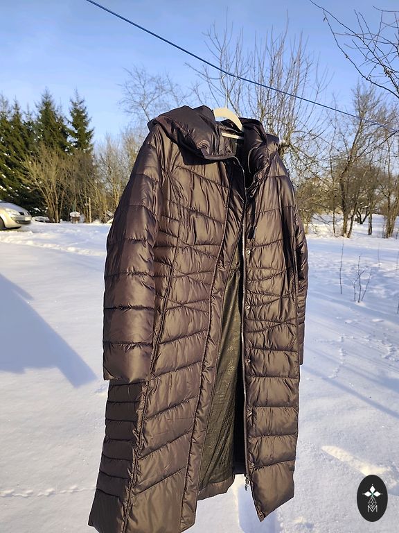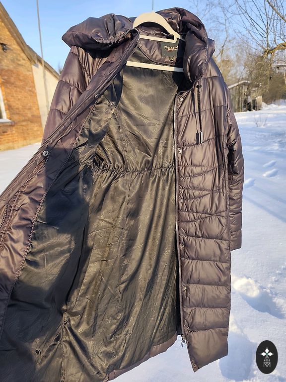 Selling a long coat for the fall/winter season. Beige color, with a removable collar and a tie belt. Size 38. Worn only 3 times. For a height of 168 cm, the coat falls below the knees.