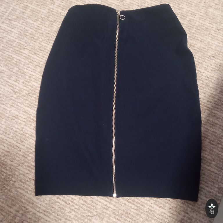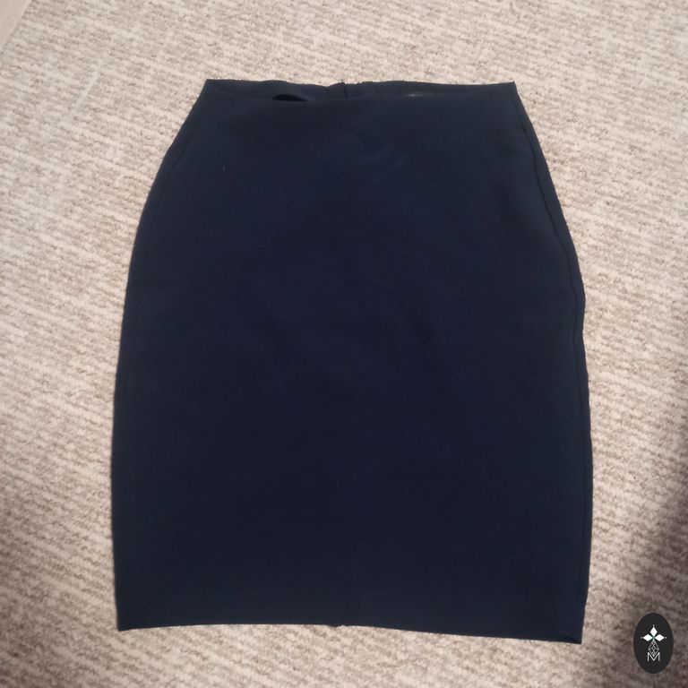 A stiff fabric skirt with a high waistline, slightly tapered towards the bottom, giving the figure an elegant, feminine shape. Size 36, length 55 cm, hip width 48 cm.