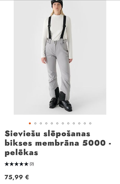 Ilgis ~ 96 cm. Vidinės siūlės ilgis ~ 76 cm. Liemuo ~ 34-35 x 2. Juosmens reguliuojamas virvele.