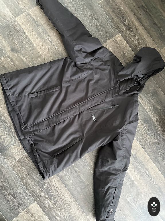 Sultingas (šiek tiek žalesnės) spalvos. Šiek tiek pašiltinta. 4 kišenės. Užsegimas užtrauktuku. Ilgis 70. Po pažastimis 58. Klubų srityje 60 cm. Nauja rankinė dovanoje. Nešiota 4 dienų kelionėje. Minkšta, apsauganti nuo lietaus ir vėjo.