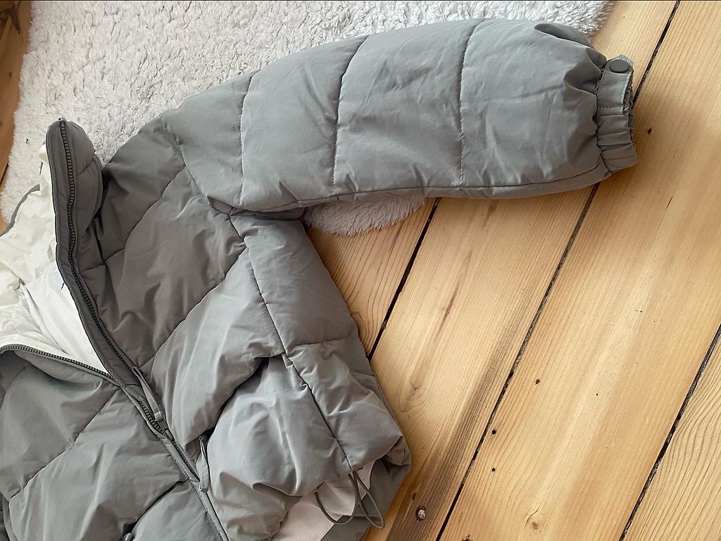 Rankovių gale užtrauktukai, striukė turi dirželį, kurį galima užsegti ties juosmens zona.