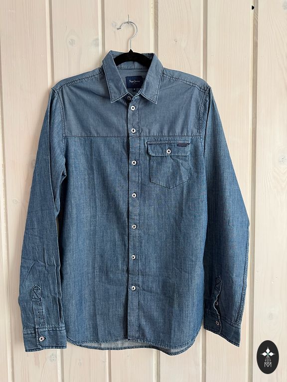 Vyriški marškiniai Espada. Dydis: M (39–40), slim fit. Tamsiai mėlyni, trumpomis rankovėmis, su stoveliu. Dėvėti kelis kartus. Patogūs ir stilingi tiek kasdienai, tiek šventinėms progoms.