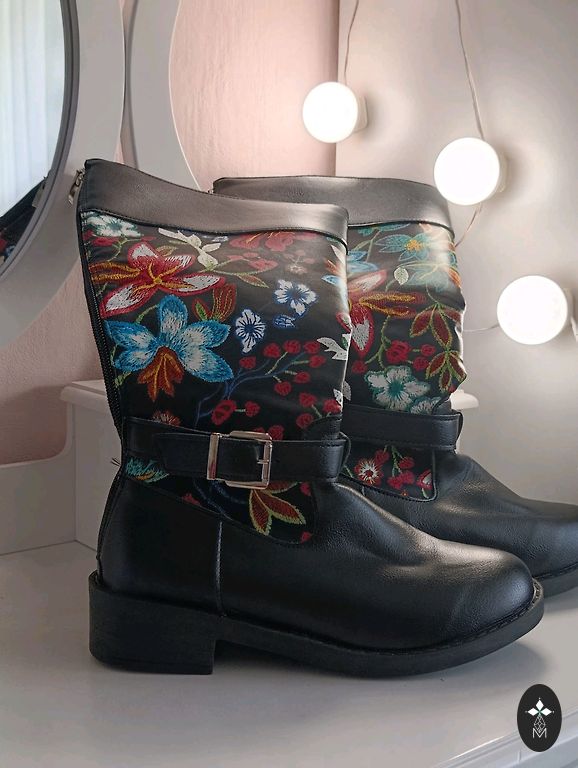 Tarpsezoninis, nėra šilto viduje. Labai patogūs užsidėti, vilkėjau su balta faro kojine. Dėvėti keletą kartų. Vidpadis 23,5 cm, aukštis 39 cm. Nuotraukų ant kojos nesiunčiu, kaina be pristatymo.
