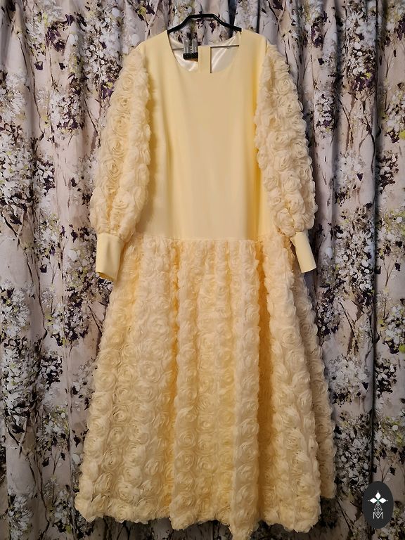 Dzīvē kleitas tonis piesātinātāka, ne tik košs. Derēs 48-52 izmēram