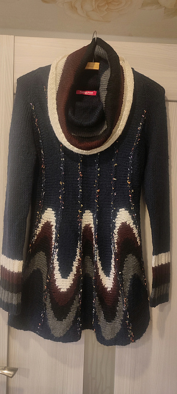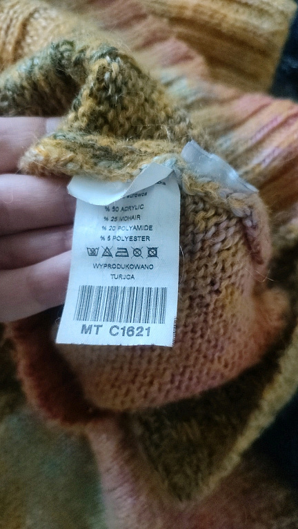 Lyle&Scott megztinis, 40 % vilnos, 60 % medvilnės, labiau primena minkštą vilnonį megztinį, nėra plonas. Dydis L – krūtinės apimtis 55 cm, ilgis 64 cm.