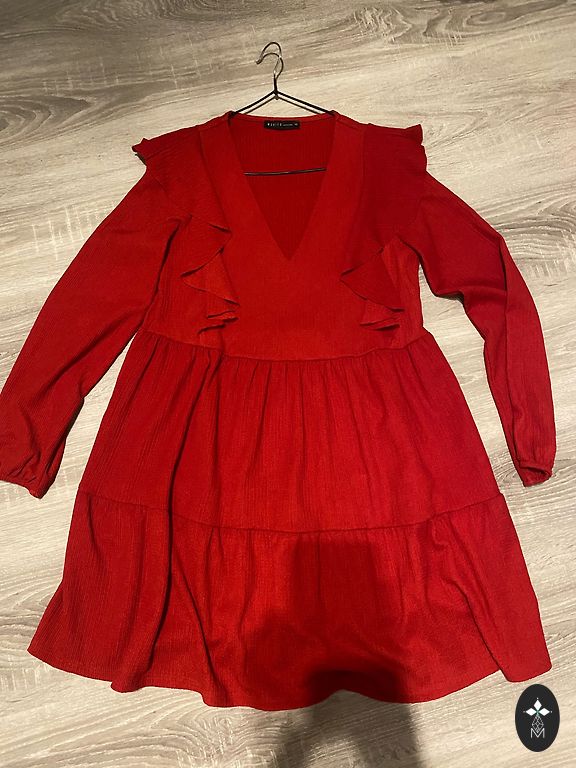 Rindkeres 55 cm, puusad kuni ~60 cm, talje 50 cm, varrukas 67 cm, kleidi kogupikkus 106 cm