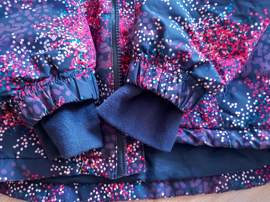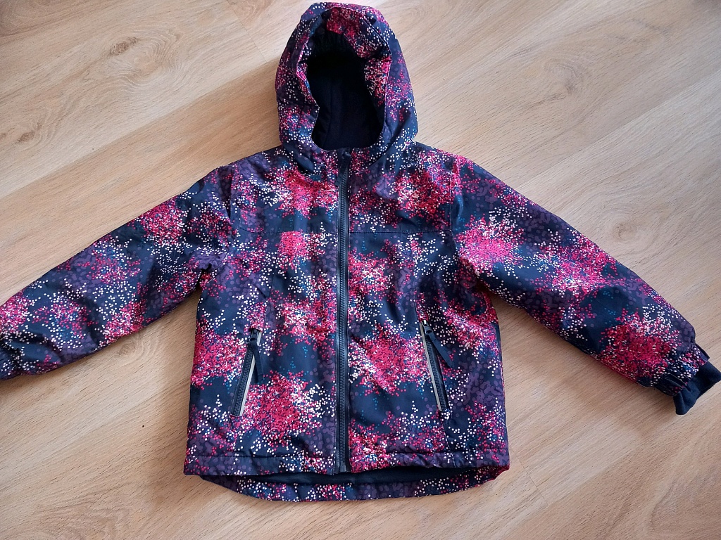 2 autumn jackets for outdoor fun, size 110. H&M soft jacket, very stylish, with some pilling in places (on sleeve ends and minimally at the bottom). The Sinsay jacket has white stripes on the sleeves, at the back bottom, and slightly at the front, but they are not particularly noticeable. Perfect for the garden or playground.