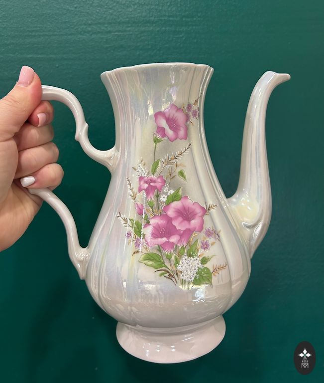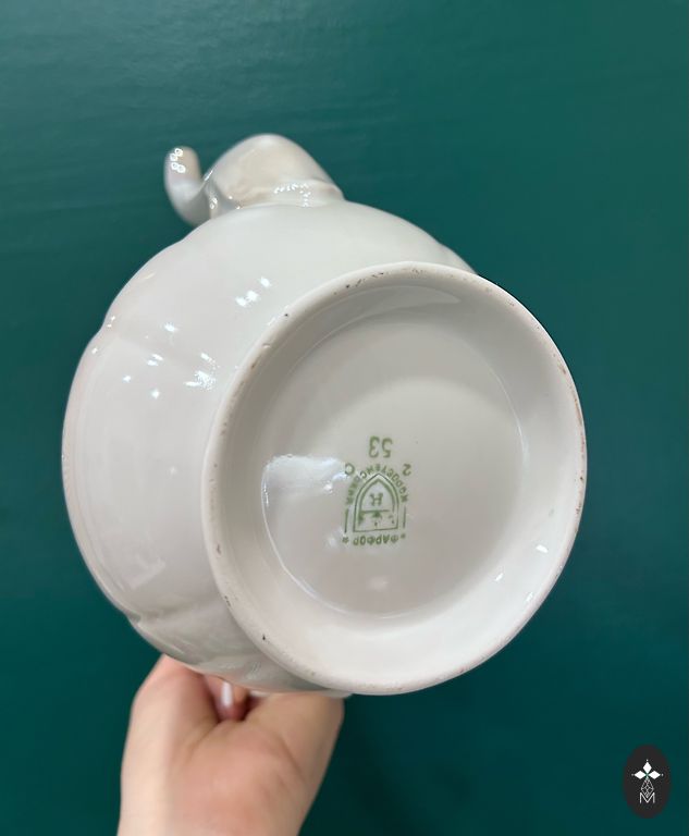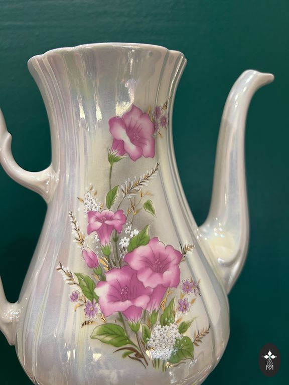 Ćmielów/made in Poland/the set is incomplete - everything shown in the photo, i.e., teapot without lid, sugar bowl, 6 saucers, and 3 cups. Included in the price 📦❗️