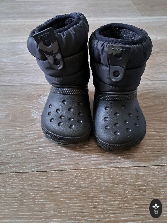 Zomšiniai žiemos batai. Vienas vaikas juos labai mažai nešiojo, daugiausia tik vežimėlyje. Neperšlampami ir neperpučiami, su membrana. Keletą kartų nešiotų žiemos batų pora.