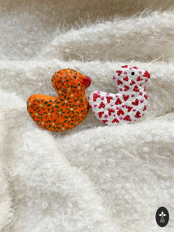 Šiuo metu turime dvi mandarinines antis! Medžiaga: popieriaus masė, kartonas. Spalva: akrilas, lakas. Medžiaga panaši į plastiką. Gana patvari ir atspari vandeniui!