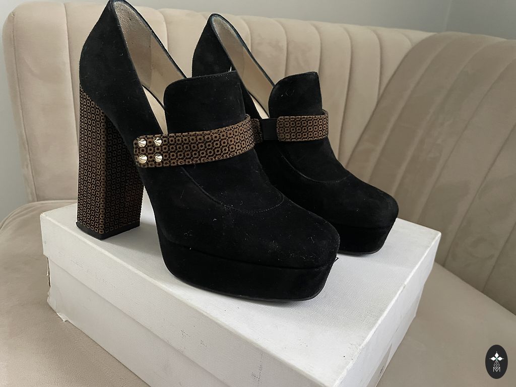 Parduodu paveikslėlyje matomus naujus 38 dydžio Aldo firmos zomšinius batus. Kairės kojos vidinėje pusėje nedidelis audinio defektas, naudojimui netrukdo. Pridedama nuotrauka.