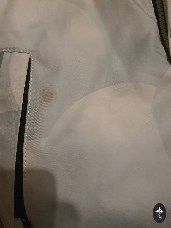 Пух съемный, на коленях минимальные следы использования, низ тоже не изношен.