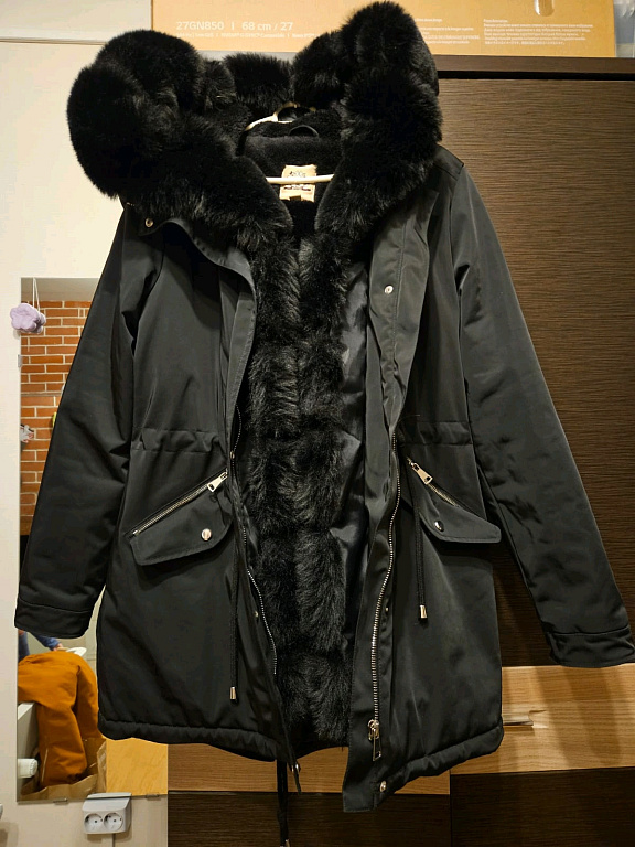 Striukė puikios būklės. Pamesta užtrauktuko atspindinti juostelė (žr. nuotrauką, apibrėžta žaliai). Šilta, Superdry Parka striukė. Nuimamas gobtuvas. Rankų manžetės. Daug kišenių. Spalva: juoda. Dydis: EU40/US8/UK12 Stabilus M dydis. Matmenys iš matavimo juostos: Pečiai: 43 cm. Krūtinė: 54 cm. Ilgis: 80 cm. Rankovė nuo peties siūlės: 65 cm + 2 cm manžetė. Rankovė nuo pažasties: 47 cm + 2 cm manžetė.