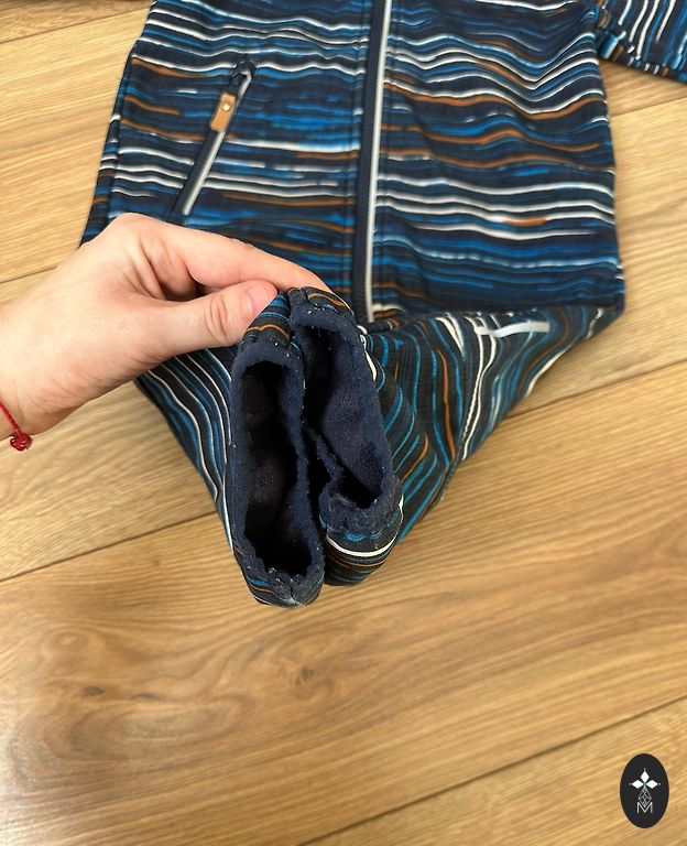 Missing foot elastic bands that have been misplaced. But the attachment points are there - you can transfer elastics from another jumpsuit if needed, or you can create your own.