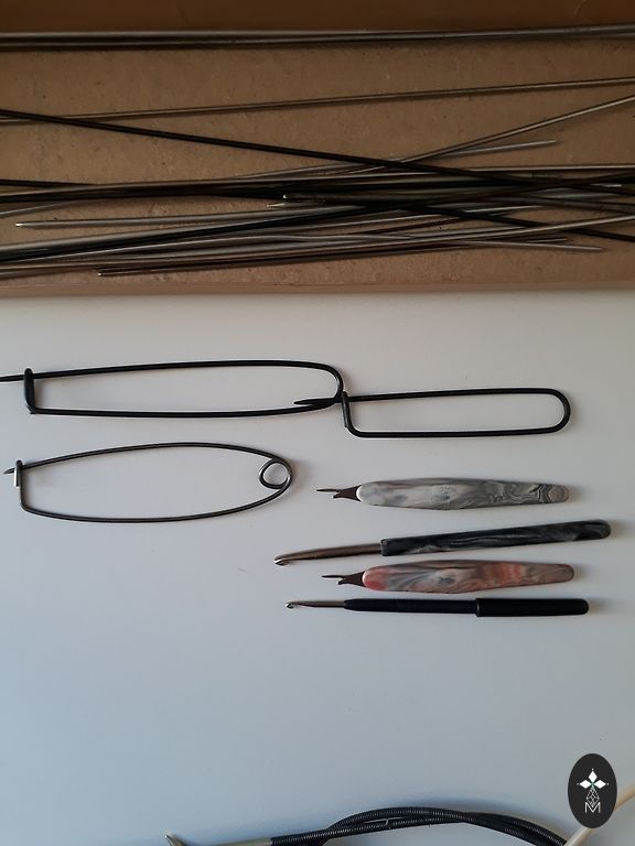 Kaks pikka tutiga mustade pärlitega narmast, millel on nöör. Nööridel on töötlemata otsad. Tuti pikkus on 55 cm.