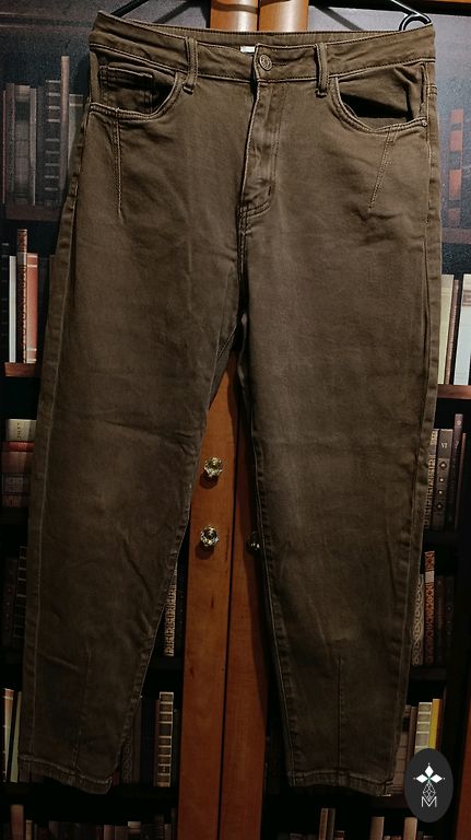 Kelnės yra tiesios ir aukštu liemeniu, todėl puikiai pabrėžia figūrą. Šiek tiek tamprios. Dydis: 44