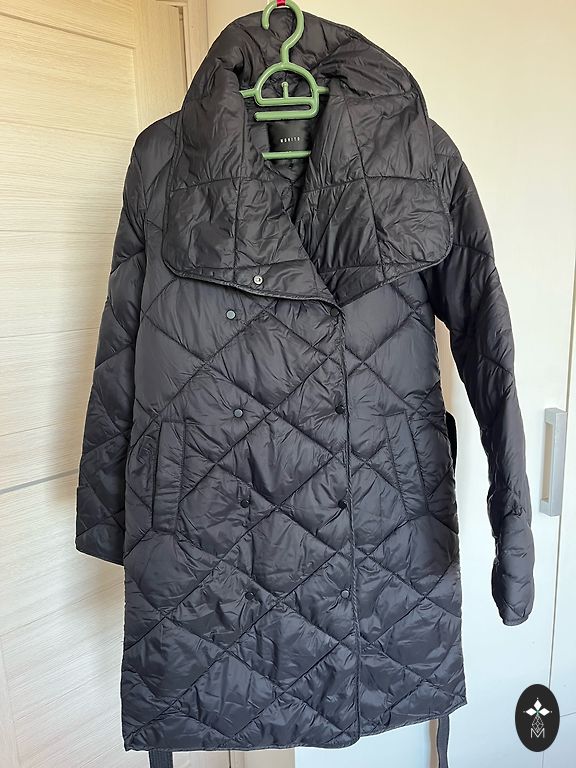 Bomber tipo striukė, plona, be pamušalo. Striukės ilgis 70 cm, krūtinė 54, apatinė dalis 50, rankovė nuo pažasties 53. Striukė neturi pečių siūlių. Rankovės ilgis nuo apykaklės 80 cm.