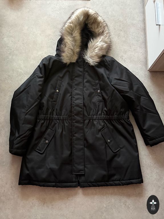 Šilta ir lengva parka iš švedų prekės ženklo 8848 Altitude. Minkštas dirbtinės avies pamušalas, nuimamas dirbtinio kailio kraštas ant gobtuvo. Gerai šildo ir nepraleidžia drėgmės. Balta spalva. Labai geros būklės – be dėmių ir pažeidimų.