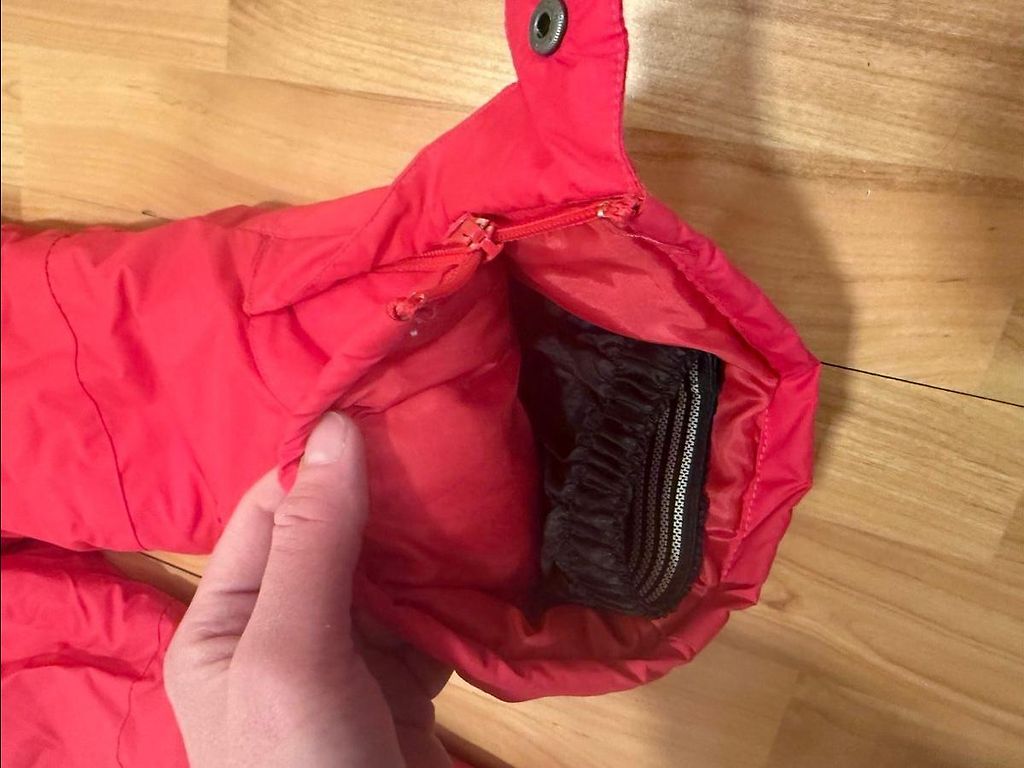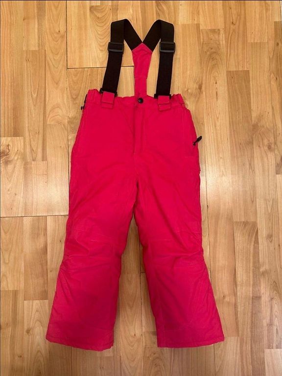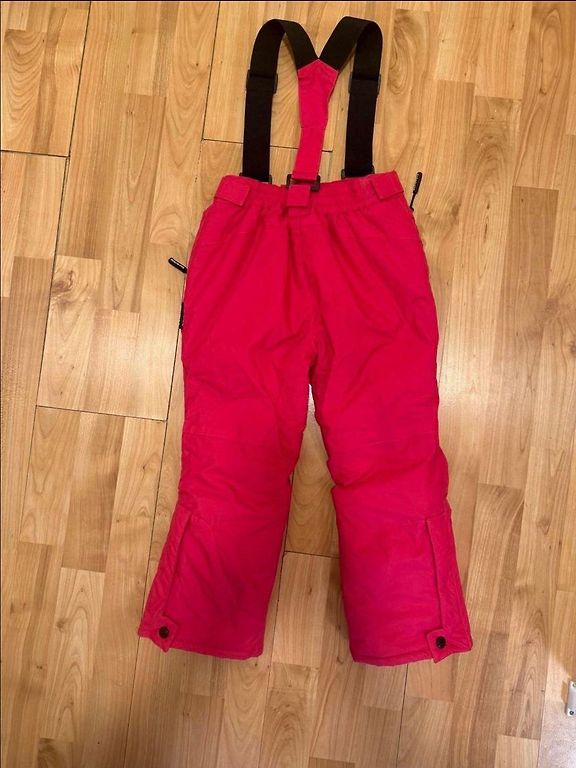Šiltos, vandeniui atsparūs žieminiai kelnės su kišenėmis ir reguliuojamomis kelnių galais. Minimalūs įbrėžimai ant kelių ir užpakalio, minimalūs nusidėvėjimai ant pačių kelnių apačios kraštų, kurie faktiškai naudojant nėra matomi ir netrukdo, kitų skylių nėra.