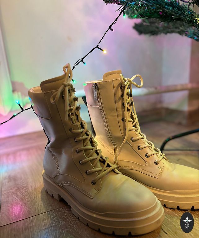 Puikios būklės labai šilti batai su vilnos vidumi, vidpadis taip pat iš vilnos. Odiniai, kokybiški. Niekur nesuplyšę, atsargiai ir mažai naudoti. Vienintelis dalykas - vidpadis šiek tiek nešvarus, manau, kad tinkamose rankose pavyks išplauti, pati nebandžiau 🤗 40 dydis, 26 cm vidpadis.