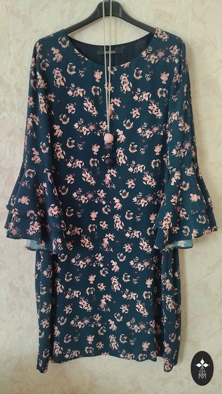 Parduodu patogią midi suknelę iš LV prekės ženklo Magnolica. Dydis pagal etiketę 38, M. Matmenys: - pečiai 39 cm - krūtinė 45 cm, tempiasi iki 50 cm - klubai 45 cm, tempiasi iki 54 cm - rankovė 61 - 46 cm - ilgis 98 cm Sudėtis: 63% viskozė, 22% akrilas, 15% poliesteris. Moteriška geometrinė forma rudens tonais, puiki sudėtis, šilta ir nesiglamžo, nesivelia, patogu tiek po švarku, tiek keliaujant. Yra nedidelis defektas - išsitraukusi siūlė (žr. paskutinę nuotrauką), galima sutvarkyti, dėvint nesimato. Parduodu tik todėl, kad išaugau iš dydžio.