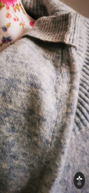 Modernus megztinis su plačiomis rankovėmis. Rankovių dalis - 100% vilna. Tinka M-L.