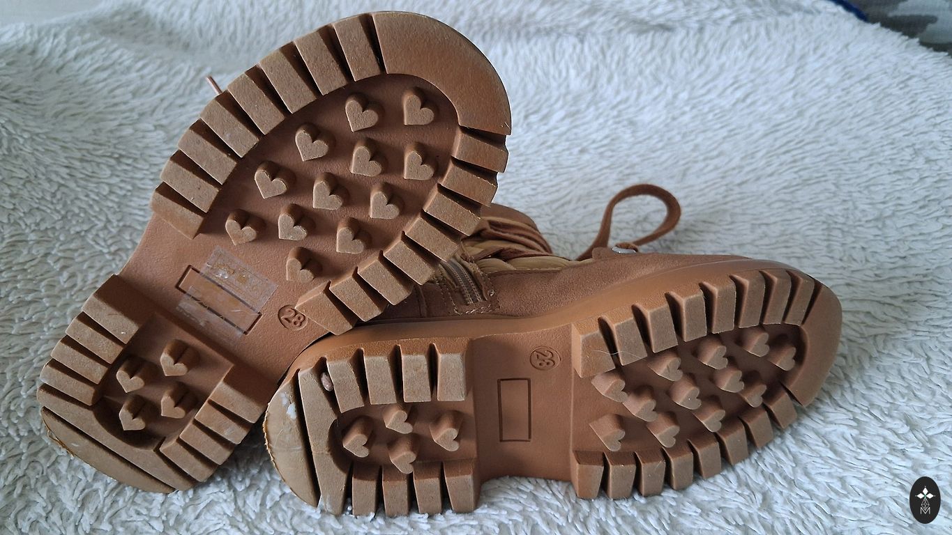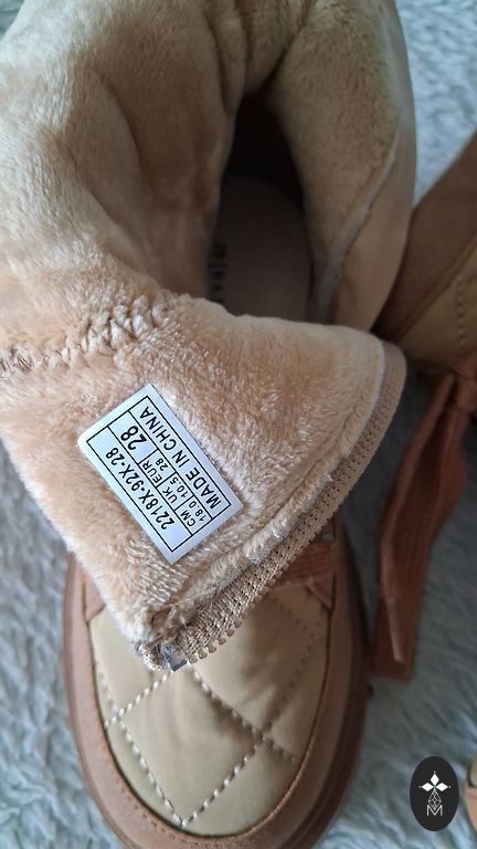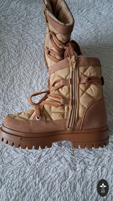 Žieminiai batai 28 dydžio, viduje vilnos pamušalas, lipukai puikios būklės. Batai turi nutrintus nosis, šiek tiek vidpadį (nufotografuota). Vidinis ilgis 18,5 cm.