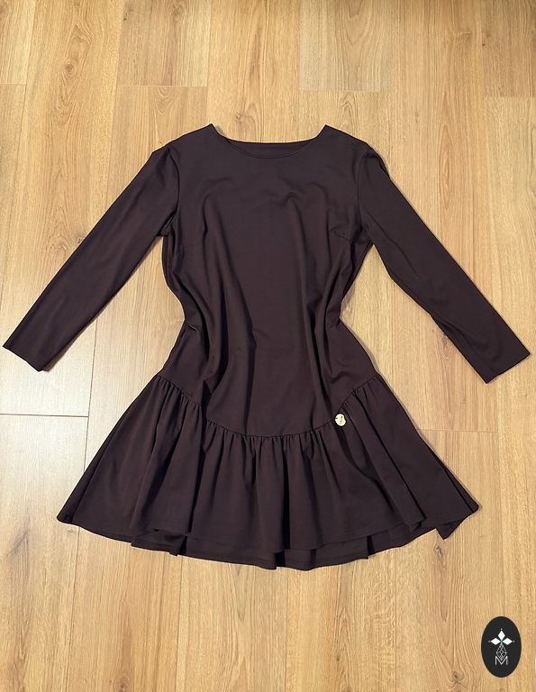Kleita ir viegla, necaurspīdīga. Mugurpusē ir skaists izgriezums. Uzvilkta 1 reizi. Kā jauna. Etiķete ir nogriezta. Rokas nedaudz izplestas, kleitai A siluets. Audums ir elastīgs. Garums 87cm, viduklis 68cm, gurni 96cm, rokas 64cm.