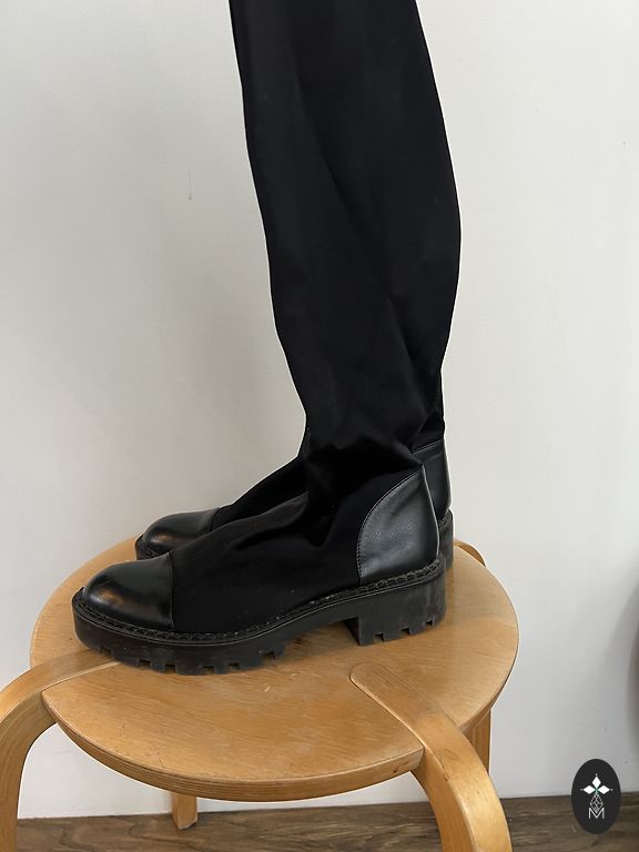 Kojinės viršuje įsiūta medžiaga užtikrina, kad kojinė laikosi vietoje. Batų ilgis apie 62 cm