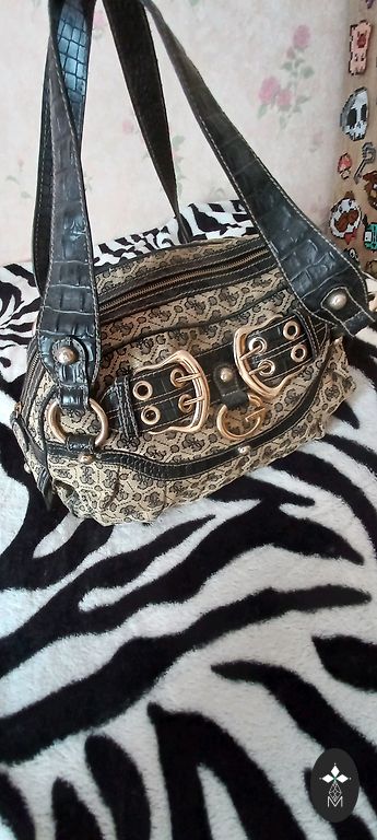Puiki būklė. Be defektų. Daugiausia laikyta spintoje. Buvo įsigyta JAV prieš kurį laiką. Viduje ir išorėje yra daug kišenių ir skyrių, taip pat yra karabinas raktams. Labai patogi ir įdomi rankinė.