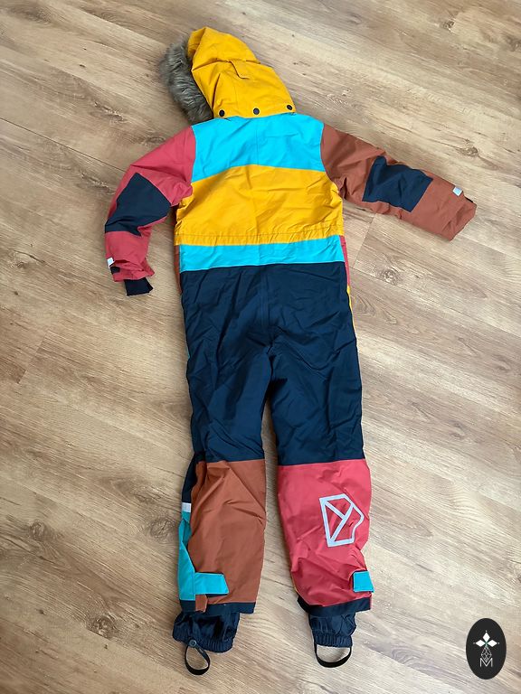 Praėjusiais metais prie kombinezono buvo priklijuoti atšvaitai - vienas atšvaitas ant kairės kojos atšoksta, bet galima nuplėšti arba priklijuoti kitą.