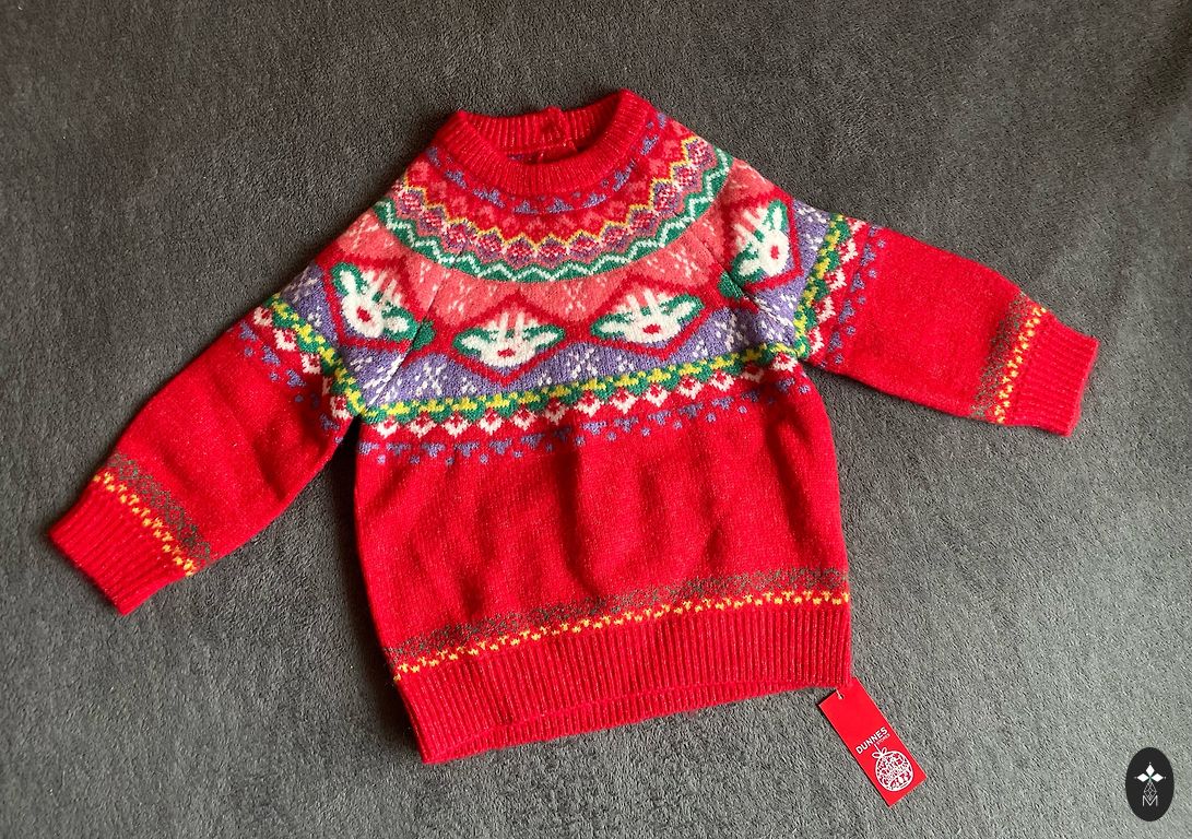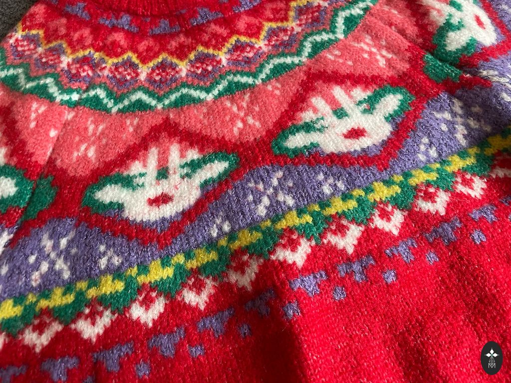 Sweater with a Christmas theme.