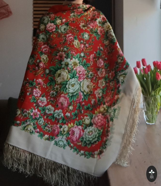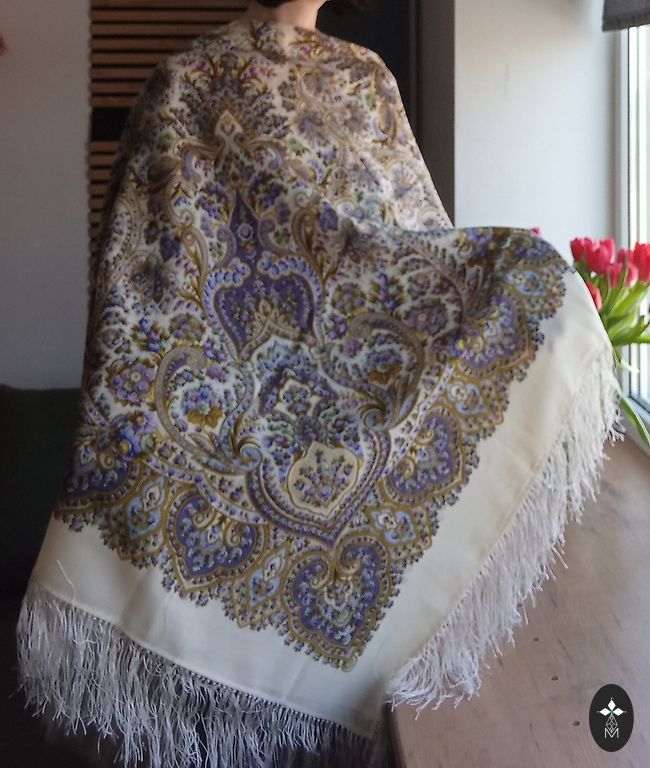 Jauna, gara, silta šalle. Garums 280cm, platums 43cm. Sastāvs 73% vilna, 27% poliesters.