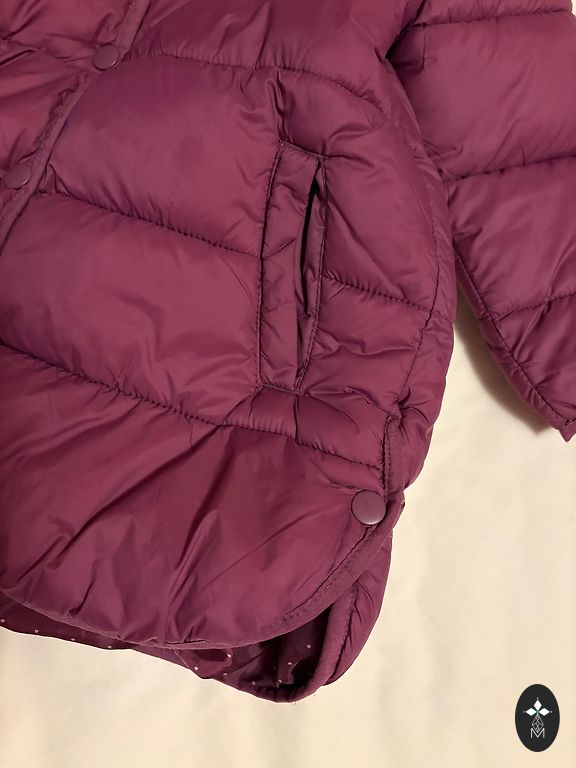 Очень удобная и качественная зимняя куртка. Защищает от ветра, снега и дождя. Если внимательно присмотреться, в области резинок на рукавах есть небольшие потертости. Куплена новой.