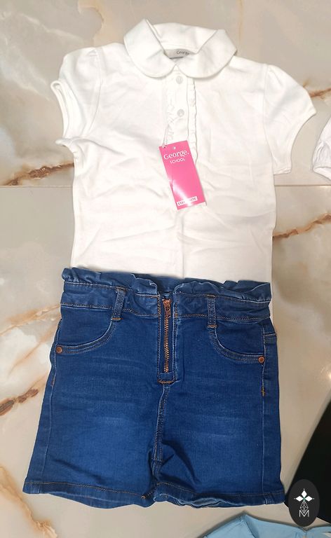 Everything seen in the picture is unworn-NEW. Price for everything together: Nike leggings, Lindex white blouse, George jeans, Pepe Jeans pink shirt, Sinsay striped t-shirt.