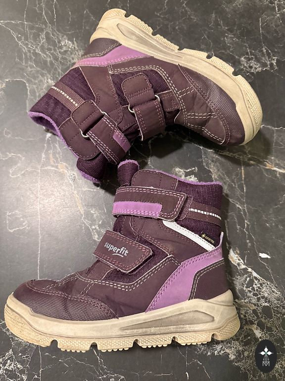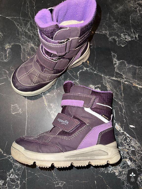 GORE-TEX žieminiai batai. 16 cm vidpadis. Puikiai tinka mažai kojai. Tinka plačiai kojai su aukštu pakilimu. Dukra mokėjo pati apsiauti ir nusiauti, labai patogūs, šilti ir nepralaidūs vandeniui.