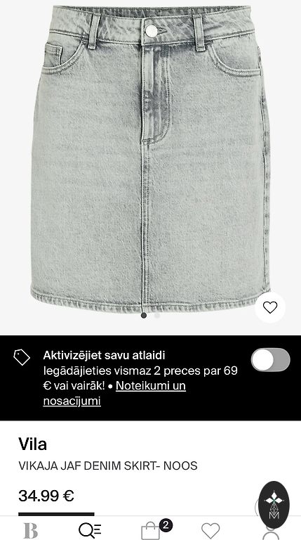 Sijonas yra iš džinsinio audinio. Liemuo 45×2 nesitampo. Klubai 55×2 nesitampo. Ilgis 74 cm.