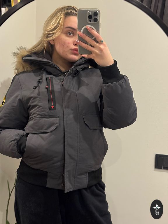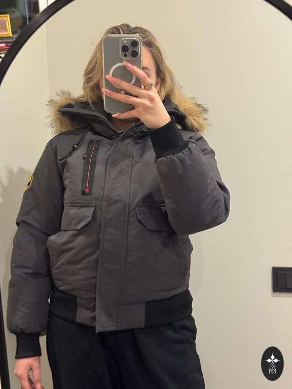Visiškai nauja striukė. Dydis 44 (M). Spalva – smėlio pilka. Striukės ilgis 70 cm, rankovių ilgis 64 cm, krūtinės apimtis 102 cm.