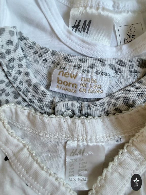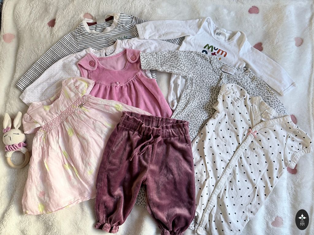 Size 62: 4 H&M bodysuits (short sleeves) and 5 pants - 4 H&M, 1 Lindex (lighter pink).