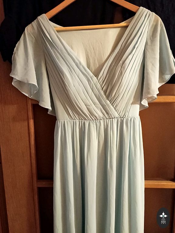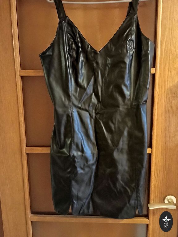 Graži suknelė iš standaus audinio ant kūno.